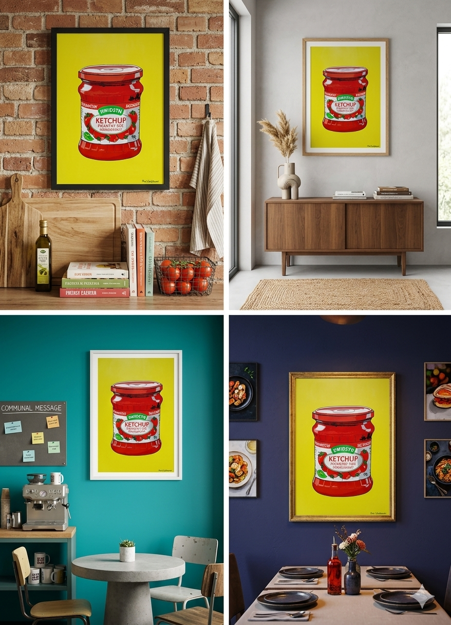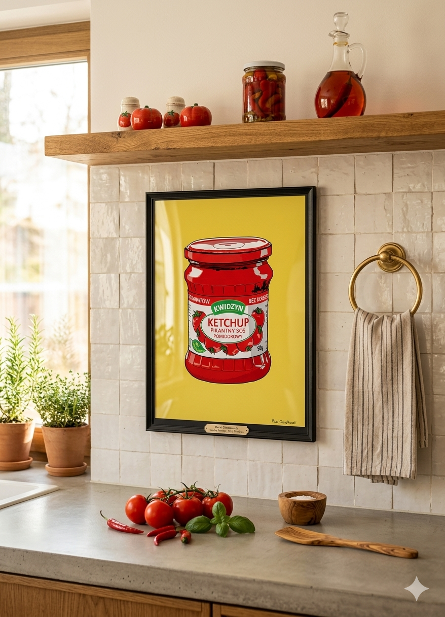 Obraz „Ketchup Kwidzyn” to idealny prezent dla miłośników sztuki z duszą. Dla tych, którzy lubią iść pod prąd, nie lubią sztampy, a swoje wnętrza kształtują według własnego stylu a nie tymczasowej mody.
