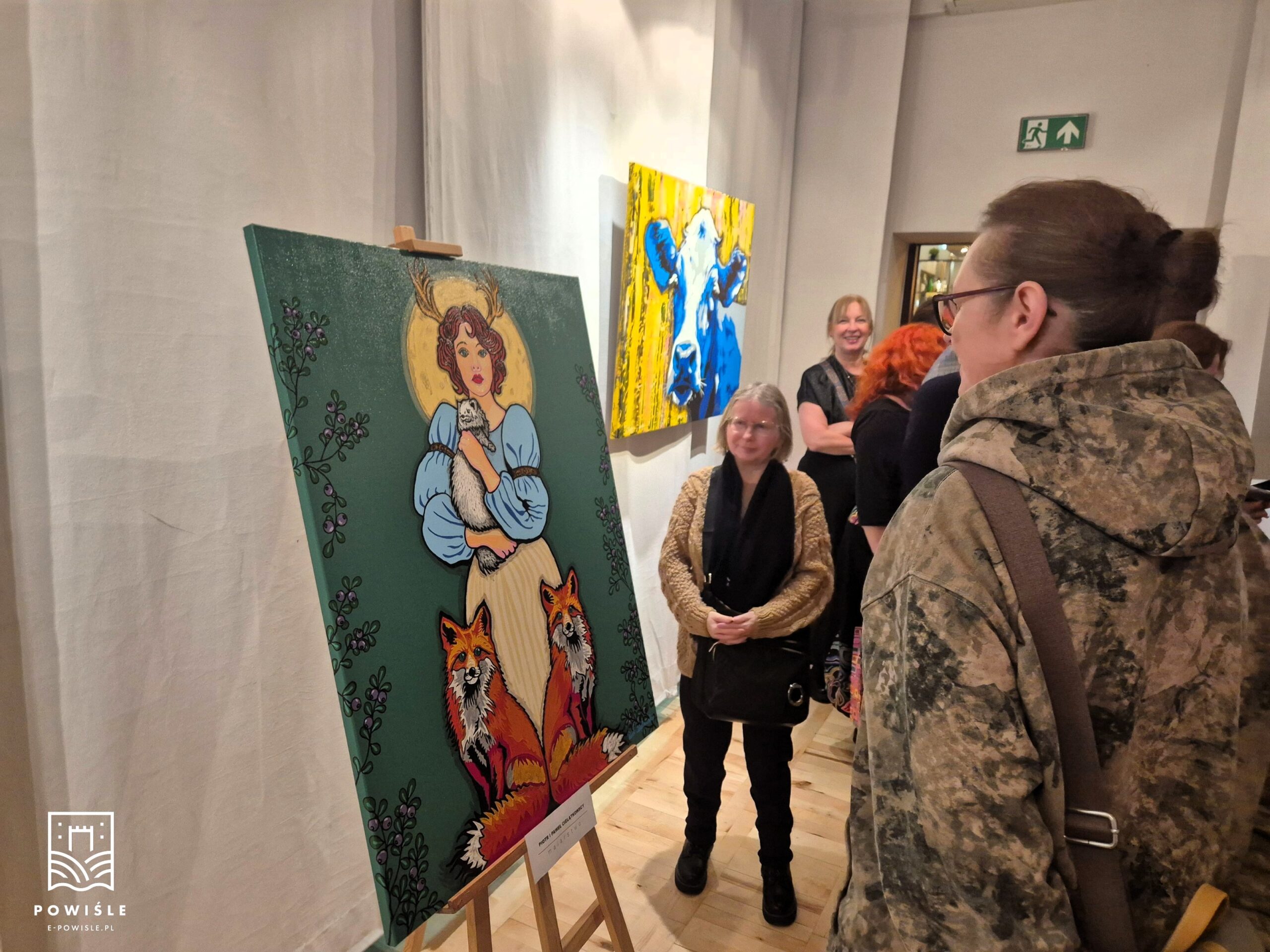 Córka Lasu – najnowsza praca Pawła, była tym razem gwoździem programu. To dzieło pełne tajemniczej aury, natury i tego charakterystycznego, „cielątkowskiego” sznytu, który sprawia, że od obrazu trudno oderwać wzrok. W prywatnej rozmowie, zanim obraz ujrzał światło dzienne, Paweł wyznał mi, że pracuje nad obrazem w motywie leśnym, nawiązującym do „Królowej Lasu”, której jestem szczęśliwą posiadaczką.